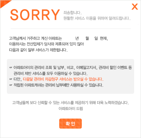 ¾ÆÆÄÆ®¾ÆÀÌ¿¡¼ °ü¸®ºñ ³³ºÎ¸¦ ¿øÇϽô °æ¿ì ¸ðµç ÀÚµ¿ÀÌü°¡ ÇØÁöµÇ¾î¾ß ÀÌ¿ëÀÌ °¡´ÉÇÕ´Ï´Ù.
